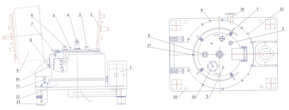 6.Inverter start-up, smooth starting, adjustable relative centrifugal force. Tightness structure with silicone rubber or fluoroelastomers seals. Nitrogen protection system (optional) is for anti-explosion applied to poisonous, flammable and explosive environment.