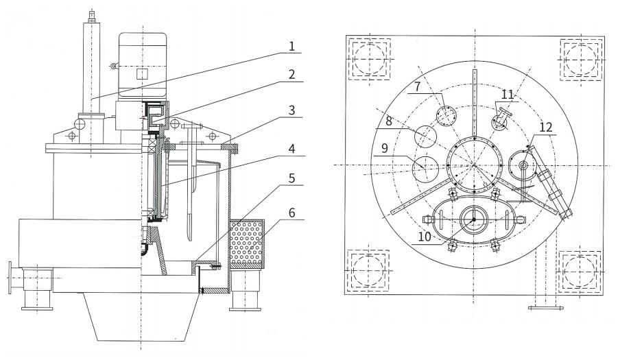 1.电机上置式直联传动,传动和转鼓回转中心与机器中心重合,运行平稳。